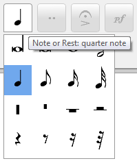 - To insert notes or rests, just click into the score. You can select the note or rest duration in the toolbar.