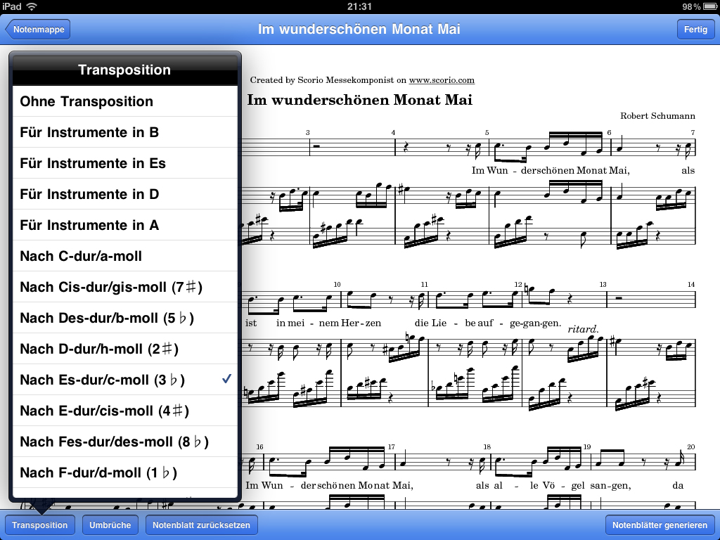 - Partituren renommierter Musikverlage (als In-App-Kauf)